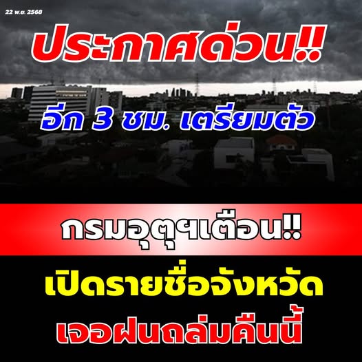 พยากรณ์อากาศ 24 ชั่วโมงข้างหน้า ภาคใต้ตอนล่าง โดยเฉพาะบริเวณจังหวัดนครศรีธรรมราช พัทลุง สงขลา ปัตตานี ยะลา นราธิวาส ภูเก็ต กระบี่ ตรัง และสตูล มีฝนตกหนักหลายพื้นที่ และมีฝนตกหนักมากบางแห่ง เนื่องจากมีหย่อมความกดอากาศต่ำปกคลุมบริเวณทะเลอันดามันตอนล่าง และประเทศมาเลเซีย ประกอบกับมรสุมตะวันออกเฉียงเหนือกำลังค่อนข้างแรงยังคงพัดปกคลุมอ่าวไทยตอนบน ภาคใต้ตอนบน และทะเลอันดามันตอนบน ขอให้ประชาชนในบริเวณดังกล่าวระวังอันตรายจากฝนตกหนักถึงหนักมากและฝนที่ตกสะสม ซึ่งอาจทำให้เกิดน้ำท่วมฉับพลันและน้ำป่าไหลหลาก โดยเฉพาะพื้นที่ลาดเชิงเขาใกล้ทางน้ำไหลผ่านและพื้นที่ลุ่ม